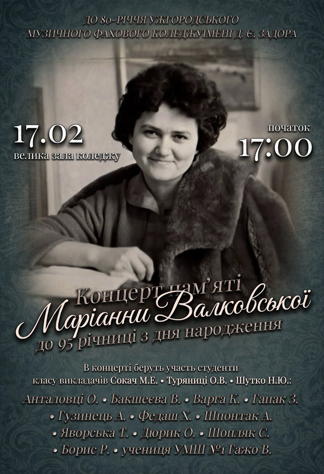 Концерт пам’яті Маріанни Валковської в Ужгородському музичному фаховому коледжі ім.Д.Є.Задора